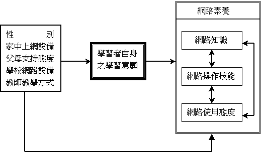 [3]資料來源:盧怡秀(2001),《高雄市高中生網路素養及網路使用現況之研究》,國立高雄師範大學工業科技教育研究所碩士論文。引用張一蕃(1997),資訊時代之國民素養與教育,民89年11月2日,http://www.stic.gov.tw/stic/1/home_test/scitech/chapter-4.htm。