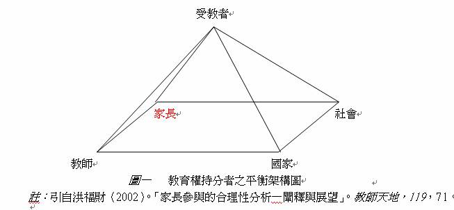 由以上的舉例,我們證實家長參與學校教育之權利取得合法的地位,受到法律所保障。既然,家長在兒童的教育過程中持有一定程度的權利,對於家長參與教育的權利實應予尊重(洪福財,2002)。