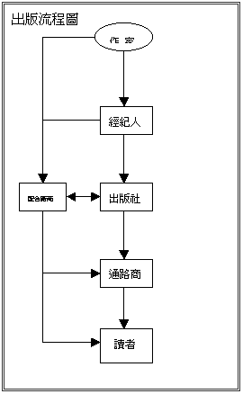 出版的流程有很多種說法,在電子出版的探討中,本處以「人」為基礎作簡單的說明;同時,「人」包括「自然人」如作家、經紀人、讀者,及「法人」如出版設、通路商、配合廠商。