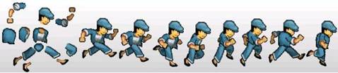 圖3、皮影戲技法人體動作拆解圖 (資料來源:Flash動畫製作技巧)