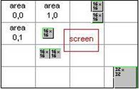 圖6、super tiles捲軸原理示意圖 (資料來源:Tile based/object based Flash Tutorial )