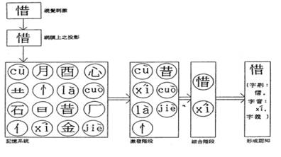 曾志朗(1991)以同時平行分配處理模式說明中文識字的歷程,如圖
